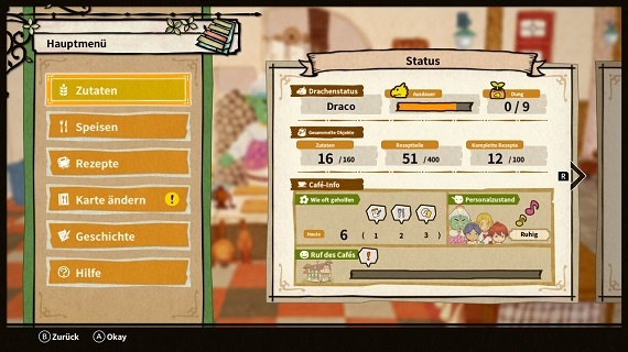 Das Gameplay ist am Anfang noch ansprechend, überholt sich jedoch in der ständigen Wiederholung. Immer wieder ziehen wir los, um Zutaten zu sammeln, Rezeptteile zu finden und im Café nach dem Rechten zu sehen. Das ist wichtiger, als zuerst gedacht. Denn nur durch Gespräche mit den richtigen NPCs zur Mittags- oder Abendzeit schreitet die Geschichte voran. Erneut mit eigentlich süßen Begegnungen, die in Gesprächen resultieren, die einfach zu sehr in die Länge gezogen werden oder sich im Inhalt stark wiederholen.