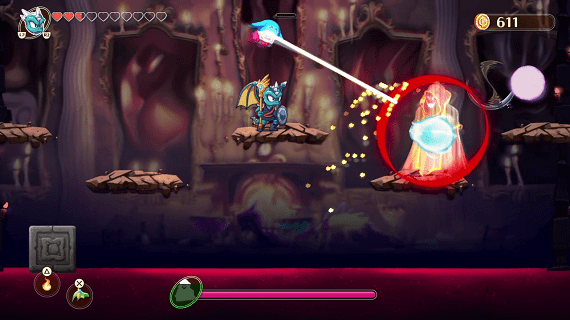 „Monster Boy and the cursed Kingdom“ ist ein klassisches 2D Jump’n’Run. Dabei besiegen wir Gegner nicht durch einen beherzten Sprung auf den Kopf, sondern mit Magie und Waffen. Die unterschiedlichen Formen, die wir nach und nach freischalten geben uns immer weiter Möglichkeiten, so dass sich der Metroidvania Titel ganz an „Wonderboy the Dragons Trap“ anlehnt. Über die Welt verteilt sind viele Schätze zu finden, die einem das Abenteurerleben erleichtern. Rätsel und Geschicklichkeitspassagen lockern das Spielgeschehen auf.