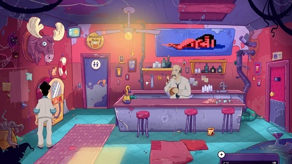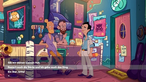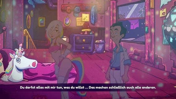 Wunderbar fand ich, dass „Wet Dreams don’t dry“ voller Easter Eggs und Anspielungen auf die alten Spiele oder die Videospielindustrie im Allgemeinen ist. Neben bekannten Locations und Charakteren findet man auch den Walter-Dildo aus Teil sieben oder König Graham aus Kings Quest.