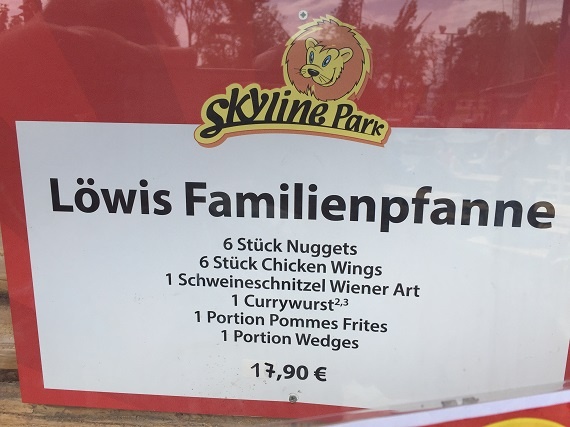 Bis auf die Pommes waren unsere kulinarischen Erlebnisse im Park gut. Natürlich erwarte ich hier aber auch keine extravagante Küche, sondern einfach bodenständige Stärkungen zwischen den Fahrten.