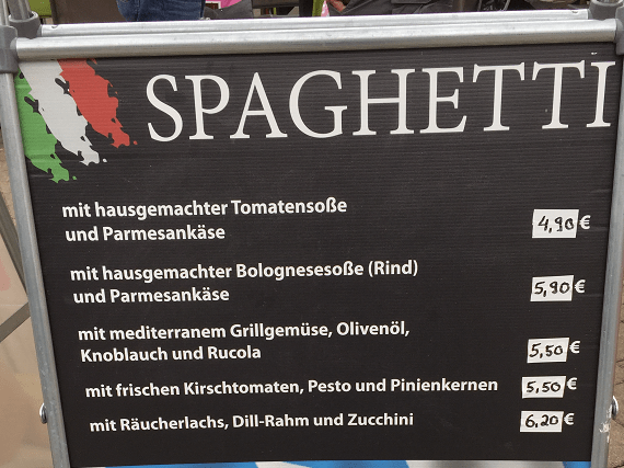 Neben dem oben erwähnten Frühstück gibt es über den kompletten Park verteilt unterschiedlichste Gerichte. Dabei sollte für jeden Geschmack etwas vorhanden sein.